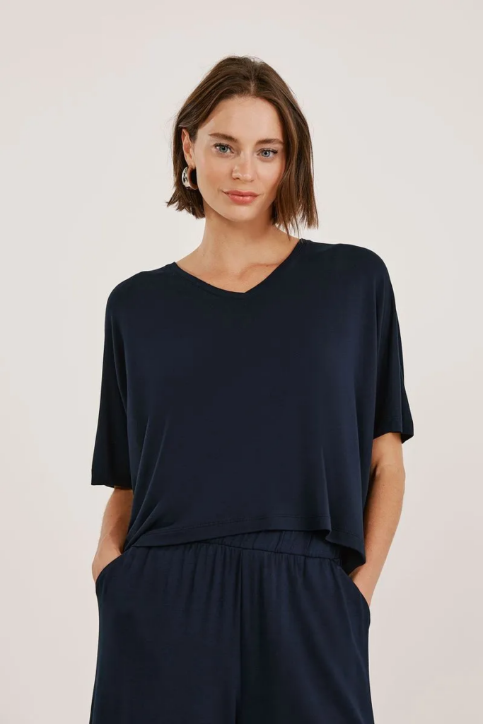 Você também pode complementar o seu visual comfy aerolook com a Blusa Cropped Marinho Bambu Isis.